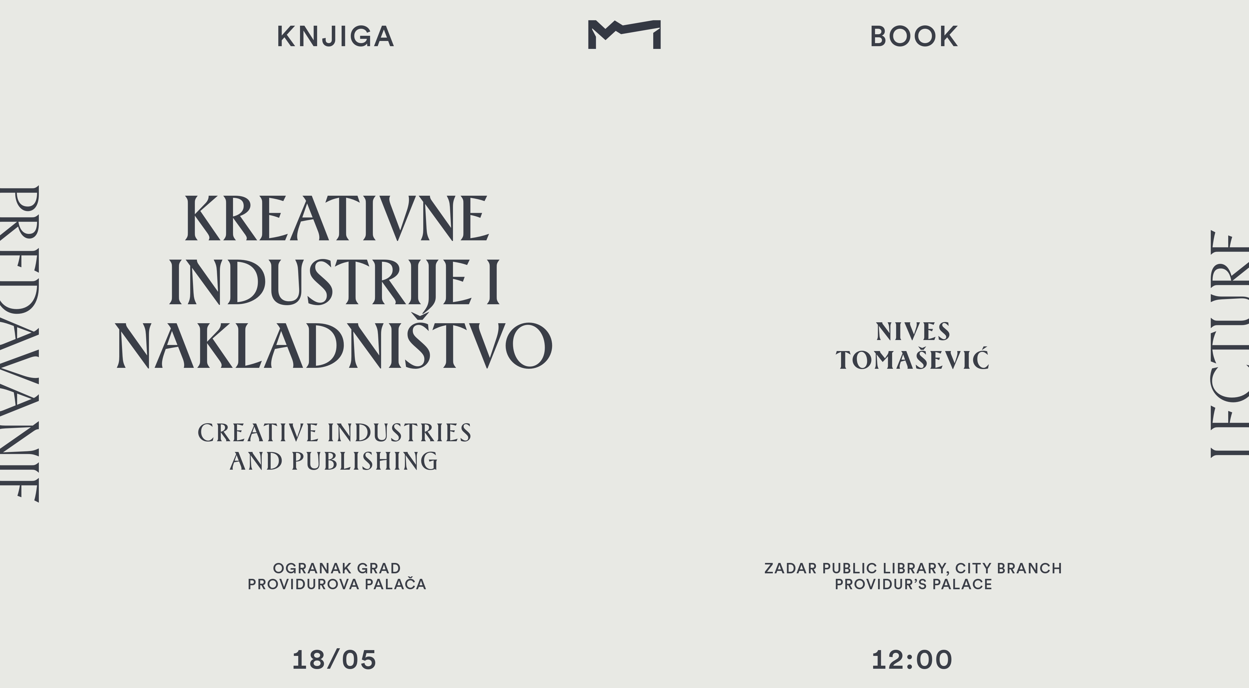 U srijedu, 18. svibnja 2022. u 12 sati u Ogranku Grad izv. prof. dr. sc. Nives Tomašević održati će predavanje Kreativne industrije i nakladništvo.